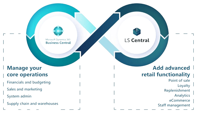 All your information is collected in one database and flows seamlessly, and automatically, between Business Central and LS Central and back.