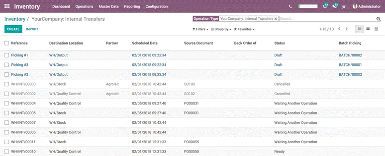 Track every stock move along your supply chain with Odoo's innovative double-entry inventory system. Monitor each movement from purchase to warehouse bin to sales order, and trace lots or serials in both upstream and downstream directions from any point in the supply chain.