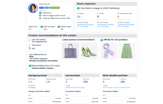 Personalization engine. Enrich customer data and segments with AI, turn insights into action, and deliver what customers want, when they want it. Deliver relevant content and purchases. Increase customer loyalty. An integrated approach to omnichannel engagement is the key to simplifying complex data throughout the