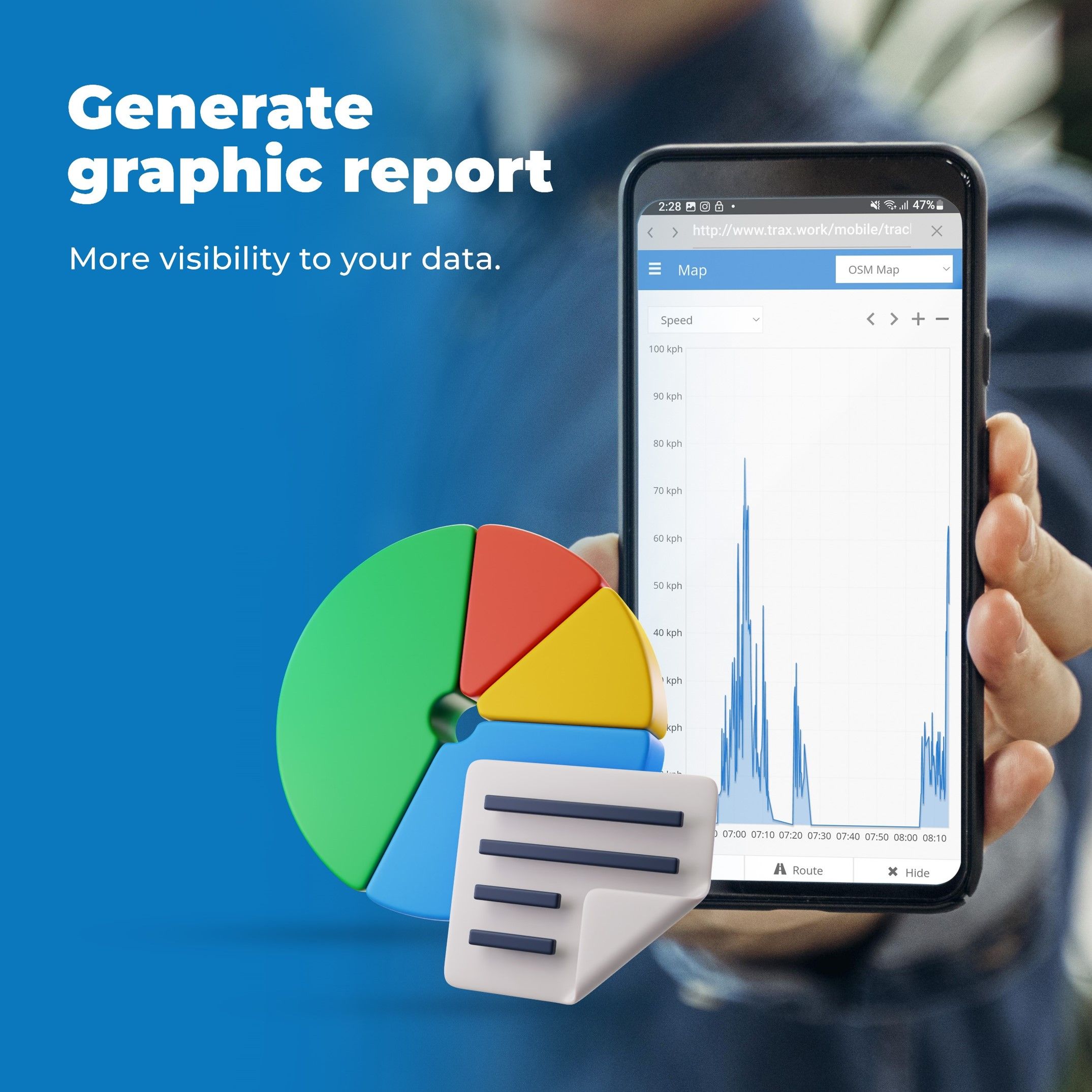 In addition, TRAXLocator provides graphical reports for speed, overspeed, altitude, ignition, fuel level, temperature, sensors, door sensors, map reports, routes, and routes with stops.